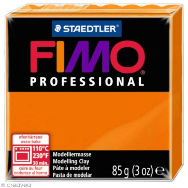 Le pain de Fimo Professional Orange se prĂŠsente en paquet de 85 gr.