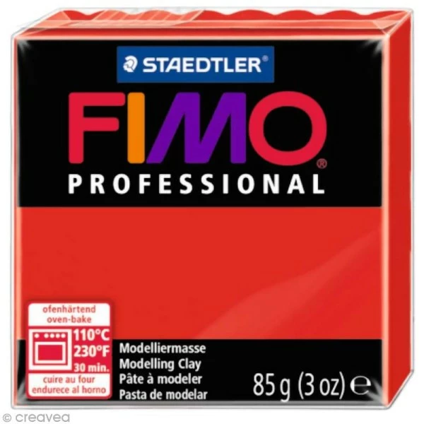 Le pain de Fimo Professional Rouge pur se prĂŠsente en paquet de 85 gr.