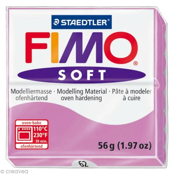 La pâte Fimo soft Lavande 62 est une pâte à modeler qui durcit en la passant au four. AgrÊable à travailler car très mallÊable, elle permet aux petits comme aux grands de rÊaliser diverses crÊations.