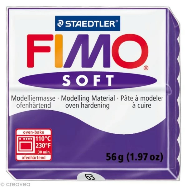 La pâte Fimo soft Prune 63 est une pâte à modeler qui durcit en la passant au four. AgrÊable à travailler car très mallÊable, elle permet aux petits comme aux grands de rÊaliser diverses crÊations.