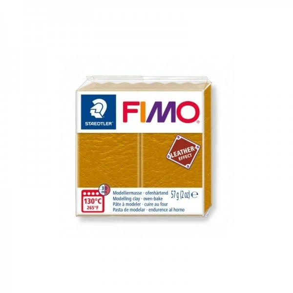 1 pain 56g pate polymère FIMO Effet CUIR Ocre 8010-179 Pour un effet cuir plus vrai que nature ! Très facile Ă modeler , la pâte Fimo Effet Cuir est aussi souple que la Soft mais bien plus solide. Sa texture granuleuse effet cuir et sa flexibilitĂŠ permettent d’utiliser cette pâte comme l’on pourrait le faire avec un tissu .